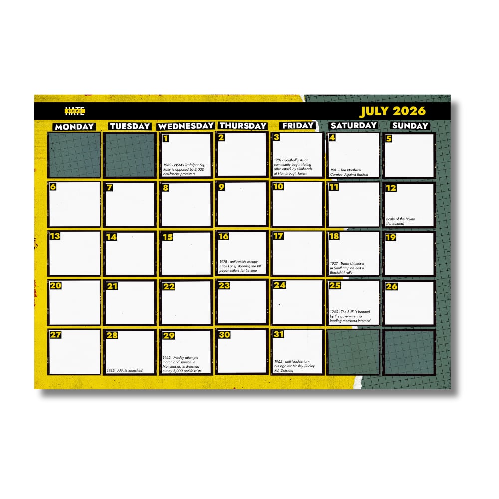 Featuring 12 drawings and dates to remember from the fight against the far-right in Britain.